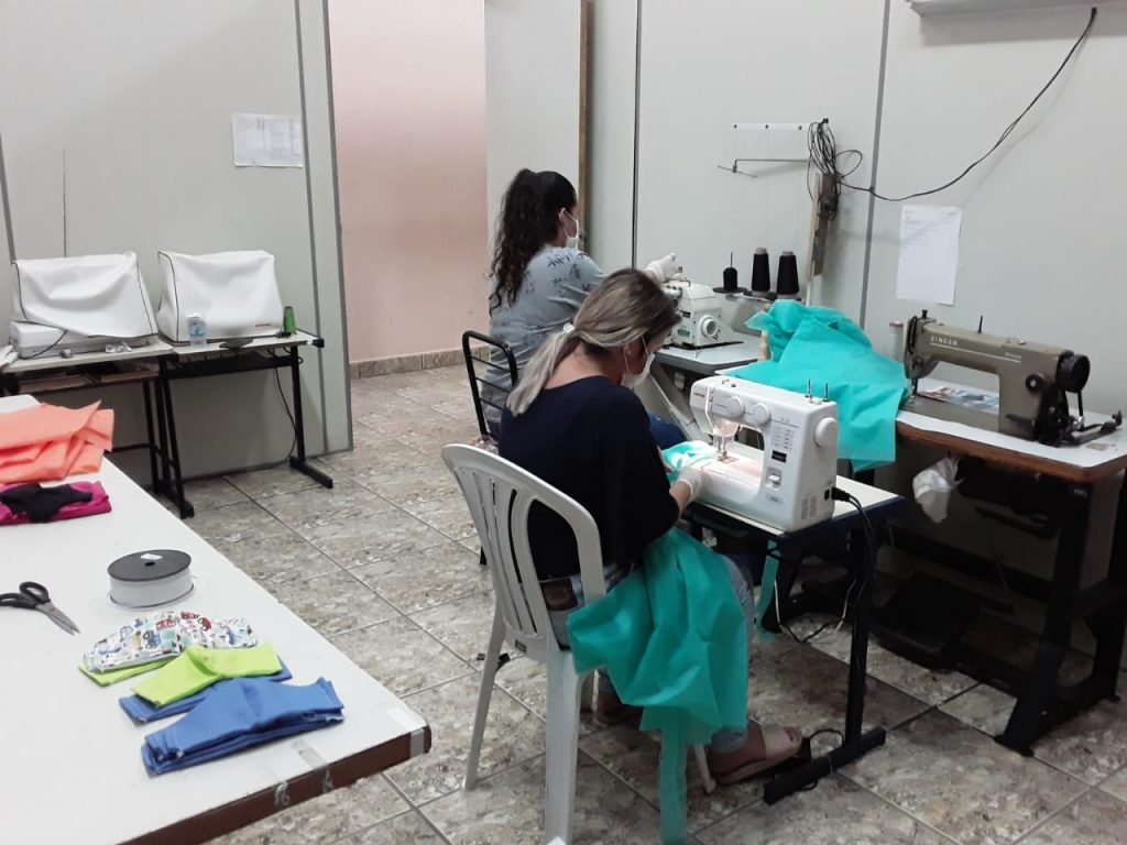 Voluntárias confeccionam máscaras e jalecos para o FSS